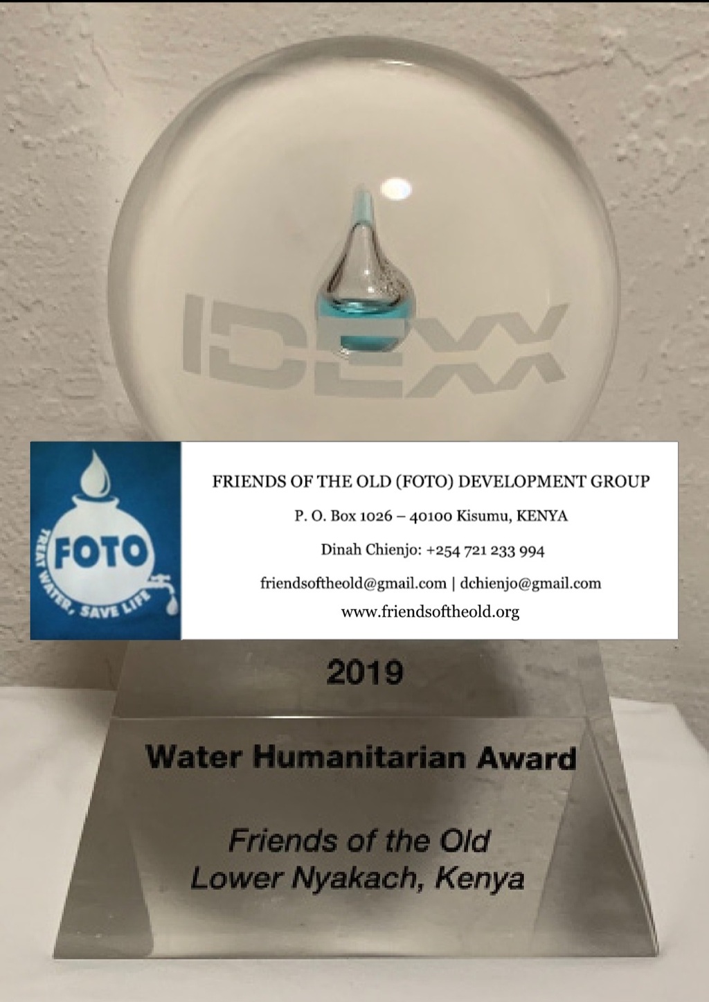 Through his microbiology expertise and International Water and Health Alliances (IWHA), an NGO he co-founded, Prof. Robert Metcalf is able to financially support FOTO in establishing a replicable strategy to eliminate waterborne diseases in Lower Nyakach. Since 2012, through IWHA, Prof. Metcalf is providing funds to FOTO for a monthly distribution on 9,320 Aquaguard chlorine bottles to all households and schools. His pioneering research in heating water to 65 degrees Celsius is extremely effective in eliminating harmful microbes. FOTO received the Water Humanitarian award in December 2020, from IDEXX a company that manufactures colilerts used in this unique strategy. At IWHA, the third development Congress in NBO, our Director Dinah Chienjo and Robert Metcalf presented a talk on FOTO's work titled "The Goal is Zero."